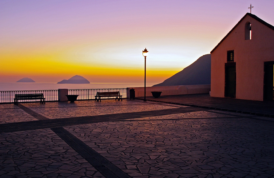Uno dei panorami più belli per vedere le Eolie. Se poi si ha la fortuna di vedere il tramonto è senza dubbio uno dei momenti più emozionanti da ricordare.